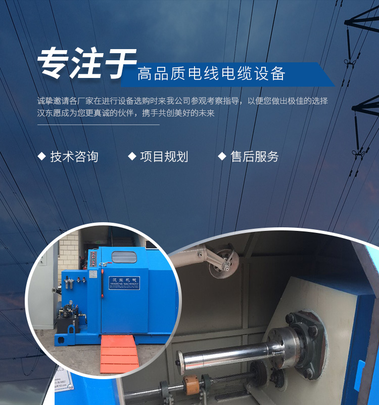 常州漢東機(jī)械始創(chuàng)于2006年,是集電線電纜機(jī)械設(shè)計(jì)、開發(fā)、制造、安裝、調(diào)試為一體化的高科技企業(yè)。本公司自開業(yè)以來(lái),積極引進(jìn)日本,歐美等國(guó)外電線電纜設(shè)備之先進(jìn)技術(shù),先后成功推出了達(dá)到行業(yè)先進(jìn)水平的電線電纜設(shè)備,主要產(chǎn)品有擠出、繞包、束線、成纜等電線電纜固定設(shè)備。在提供系統(tǒng)設(shè)備的同時(shí),還向客戶提供售前技術(shù)咨詢、項(xiàng)目規(guī)劃、以及售后服務(wù)。我公司本著“以人為本、科技先導(dǎo)、用戶為上”的宗旨,為客戶提供牢靠的產(chǎn)品與省心的服務(wù)。漢東愿成為您更真誠(chéng)的伙伴,攜手共創(chuàng)美好的未來(lái)! 了解更多+大核心優(yōu)勢(shì)